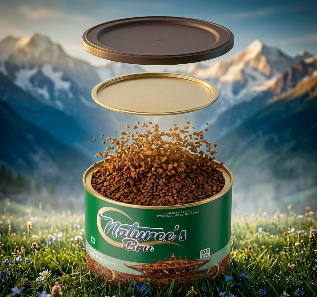 Naturee’s Bru Instant Coffee Granules are created through a sophisticated process that starts with selecting premium coffee beans—typically a blend of Arabica for smoothness and Robusta for body and intensity .